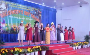 Một trong những phần thi được mong đợi nhất chính là “Halloween Catwalk & Mask Presentation”. Đi đầu là phần catwalk của 11 giáo viên trong tổ Ngoại Ngữ – nơi không chỉ dạy ta nói “Hello”, “Bonjour”, hay “Xin chào” một cách chuẩn chỉnh, mà còn sẵn sàng “shine bright like a diamond” trên sàn catwalk! Cùng với những mão đội đầu duyên dáng do chính học sinh từ các lớp thiết kế, những cô giáo duyên dáng với đội hình chuẩn như câu văn ngữ pháp không sai một dấu phẩy. Mỗi bước chân là một “vocabulary” mới của sự duyên dáng, mỗi nụ cười là một “grammar point” khiến người xem nhớ mãi không quên! Tổ Ngoại Ngữ – những người không chỉ dạy ngôn ngữ, mà còn truyền cảm hứng sống, phong cách, và sự tự tin! Các cô khẳng định rằng: ngoại ngữ không chỉ nằm trong sách vở – mà còn là phong cách, là thần thái, là sự tự tin tỏa sáng ở mọi nơi!