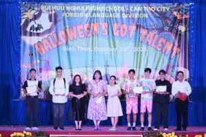 Chiều ngày 30/10/2025, sân trường THPT Bùi Hữu Nghĩa trở nên sôi động và rực rỡ sắc màu trong không khí của Lễ hội Halloween’s Got Talent – một chương trình do Tổ Ngoại ngữ phối hợp cùng Đoàn trường tổ chức. Không chỉ là dịp vui chơi chào Halloween, hoạt động còn là sân khấu để học sinh thể hiện sự tự tin, linh hoạt và sáng tạo của mình qua từng phần thi đầy hấp dẫn.